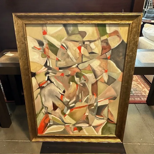 Abstract Green & Orange Oil on Canvas By Scott Spencer