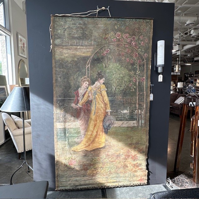 Antique 1800's Painting On Scrolled Canvas (Saguaro On Back)