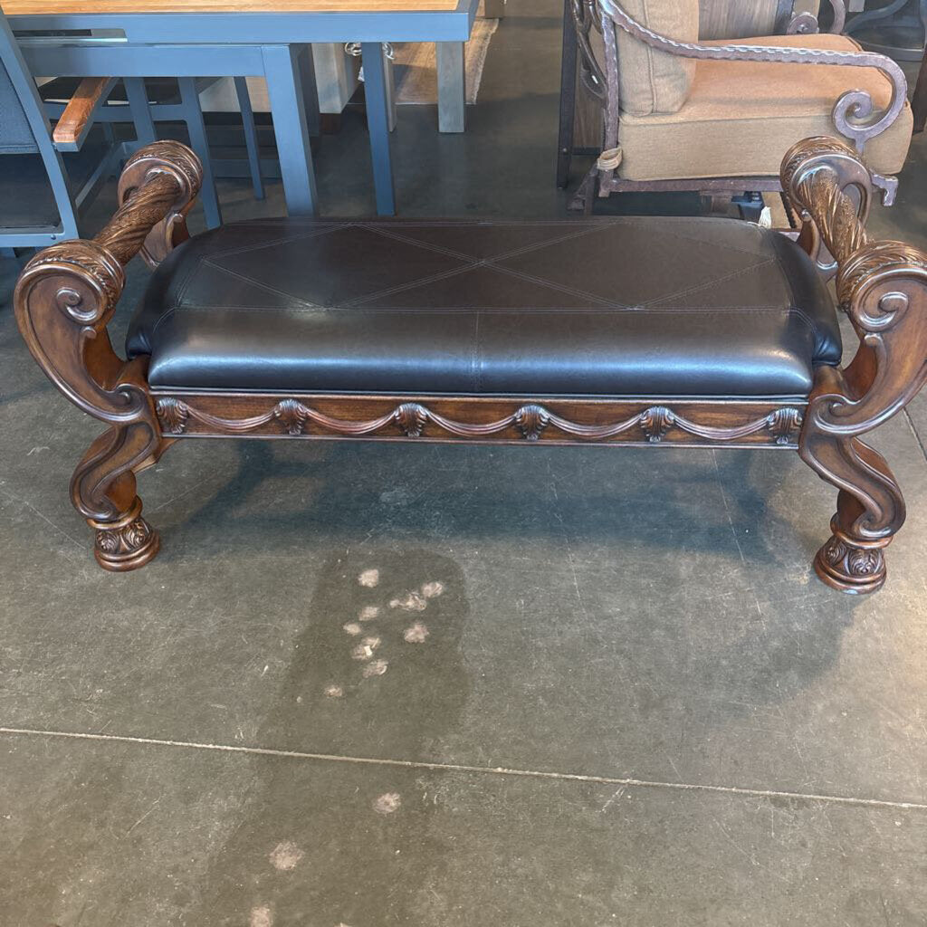 Ashley Carved Wood & Leather Bench- 53X20X24.5H
