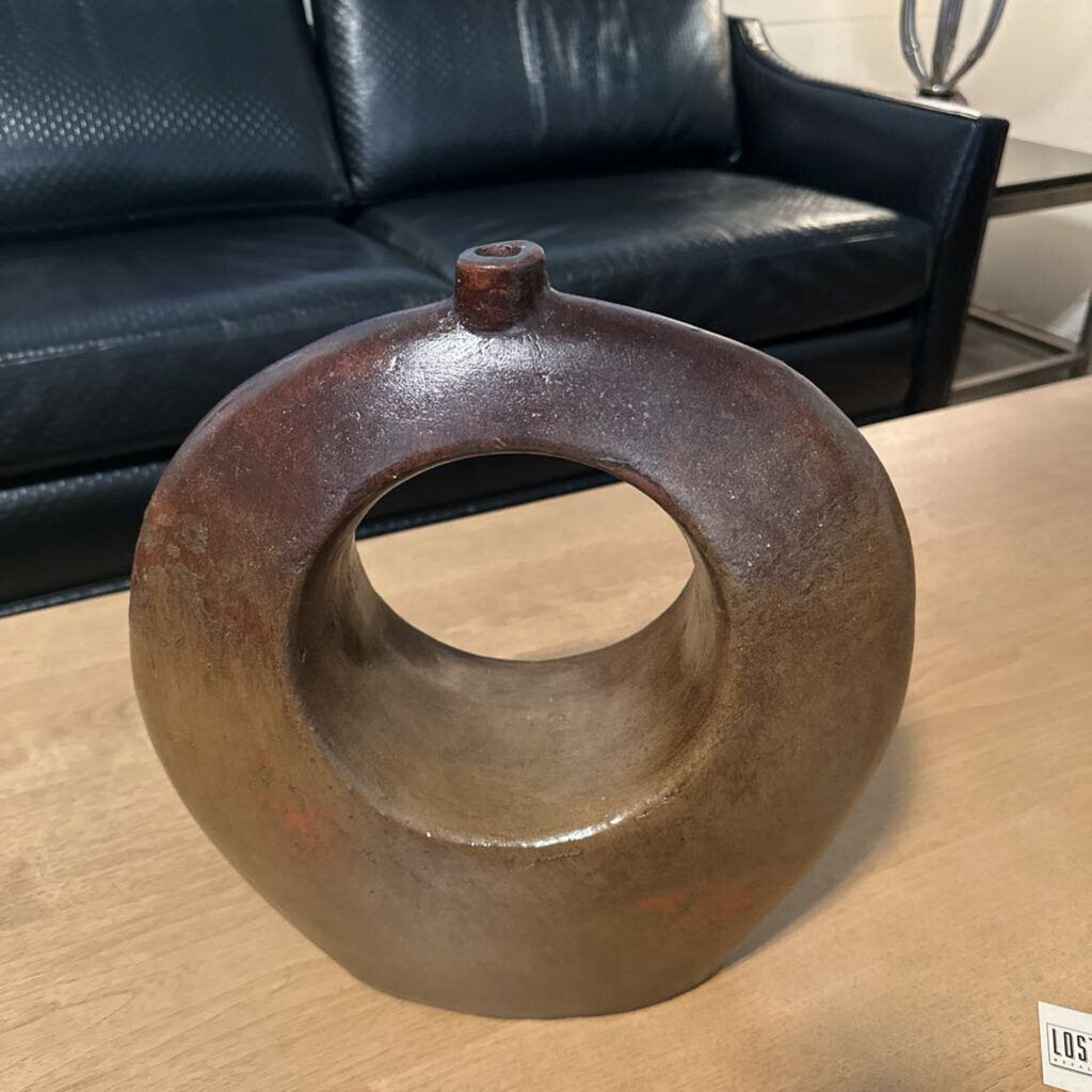 Brown Round Vase W/ Hole- 15X2X16