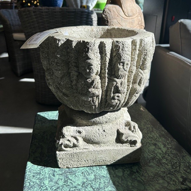 Carved Stone Planter On Pedestal
