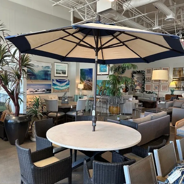 Custom Faux StoneTable W/ 6 Inside Out Chairs & Umbrella