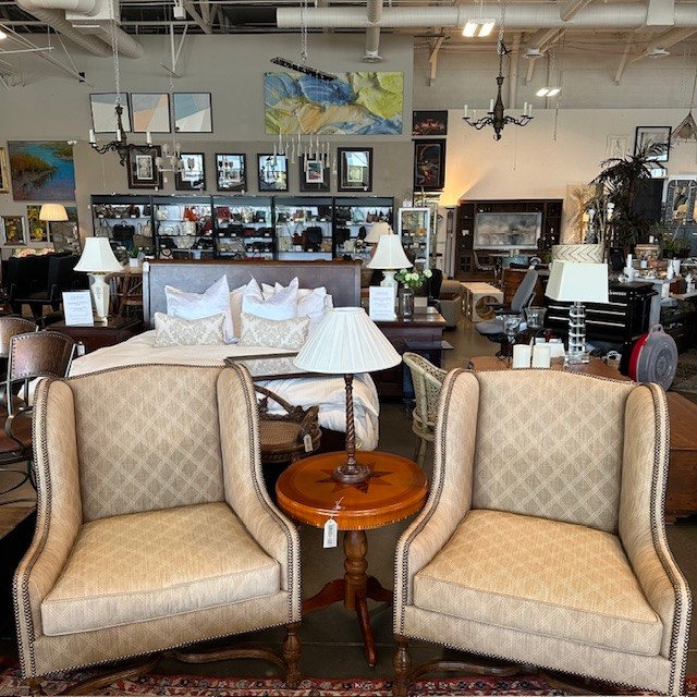 Custom Wingback Antique Frame Chair - Pair - AS IS