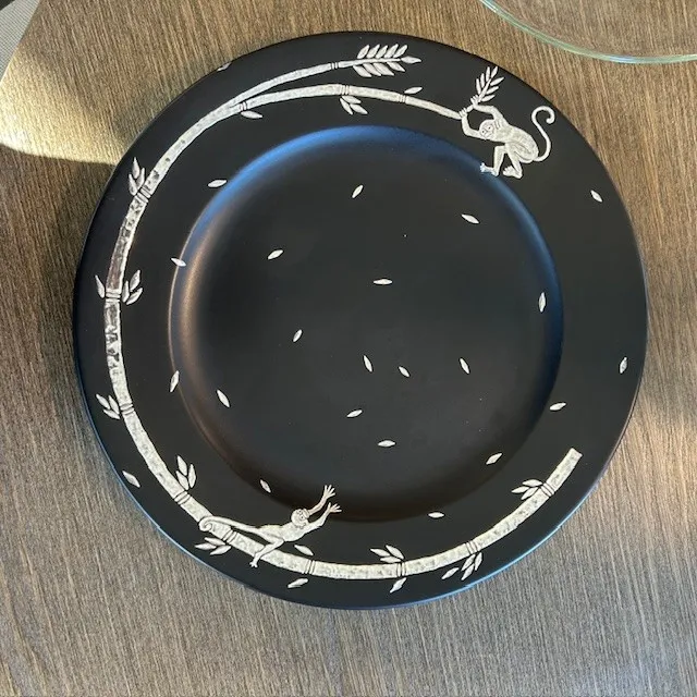 Emilia Castillo Silver Inlaid Monkey Plate W/ Glass Topper Plate - Set of 10