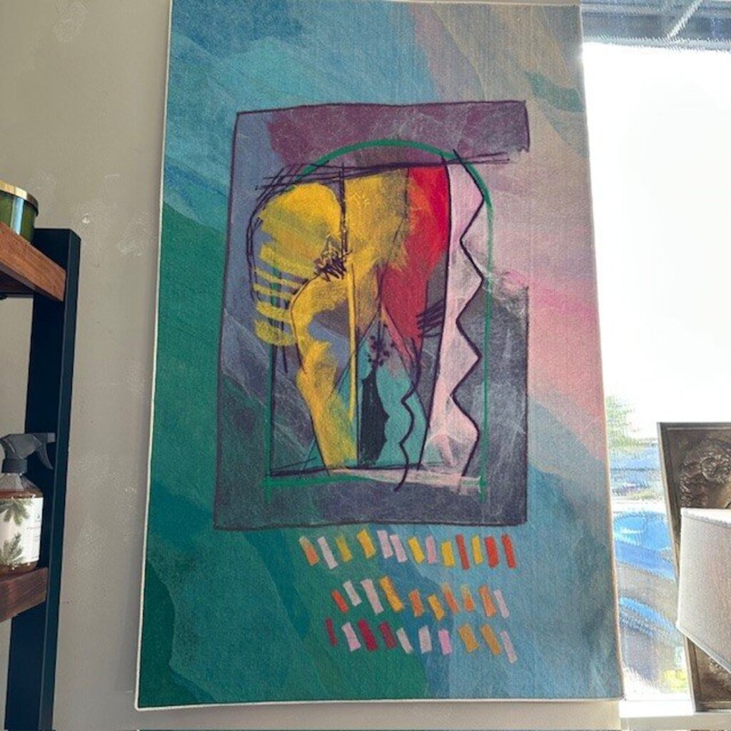 Vintage Hand Painted Wool Tapestry By Israeli Artist Calman Shemi