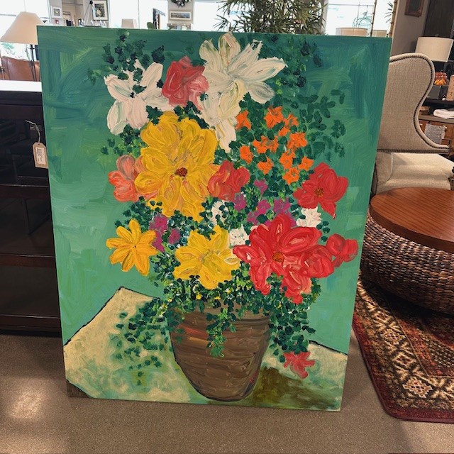 Antique 1800's Painting On Scrolled Canvas (Saguaro On Back)