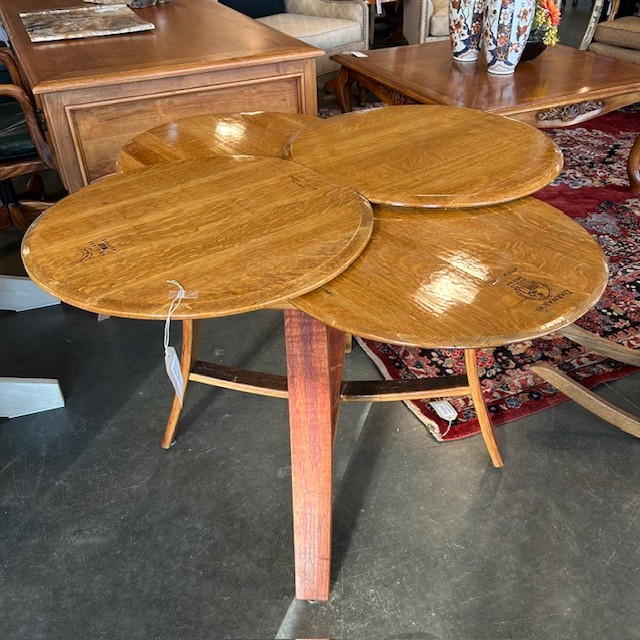 French Oak Wine Barrel Dining Table W/ 4 Barrel Head Top