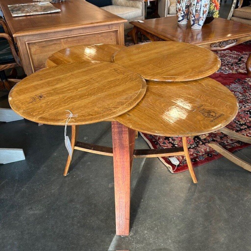 French Oak Wine Barrel Dining Table W/ 4 Barrel Head Top - 44X44X29H