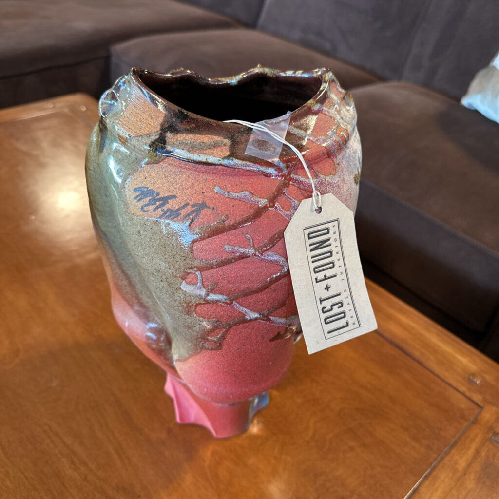 Glazed Multicolor Vase Signed By Christopher Heede - 12"
