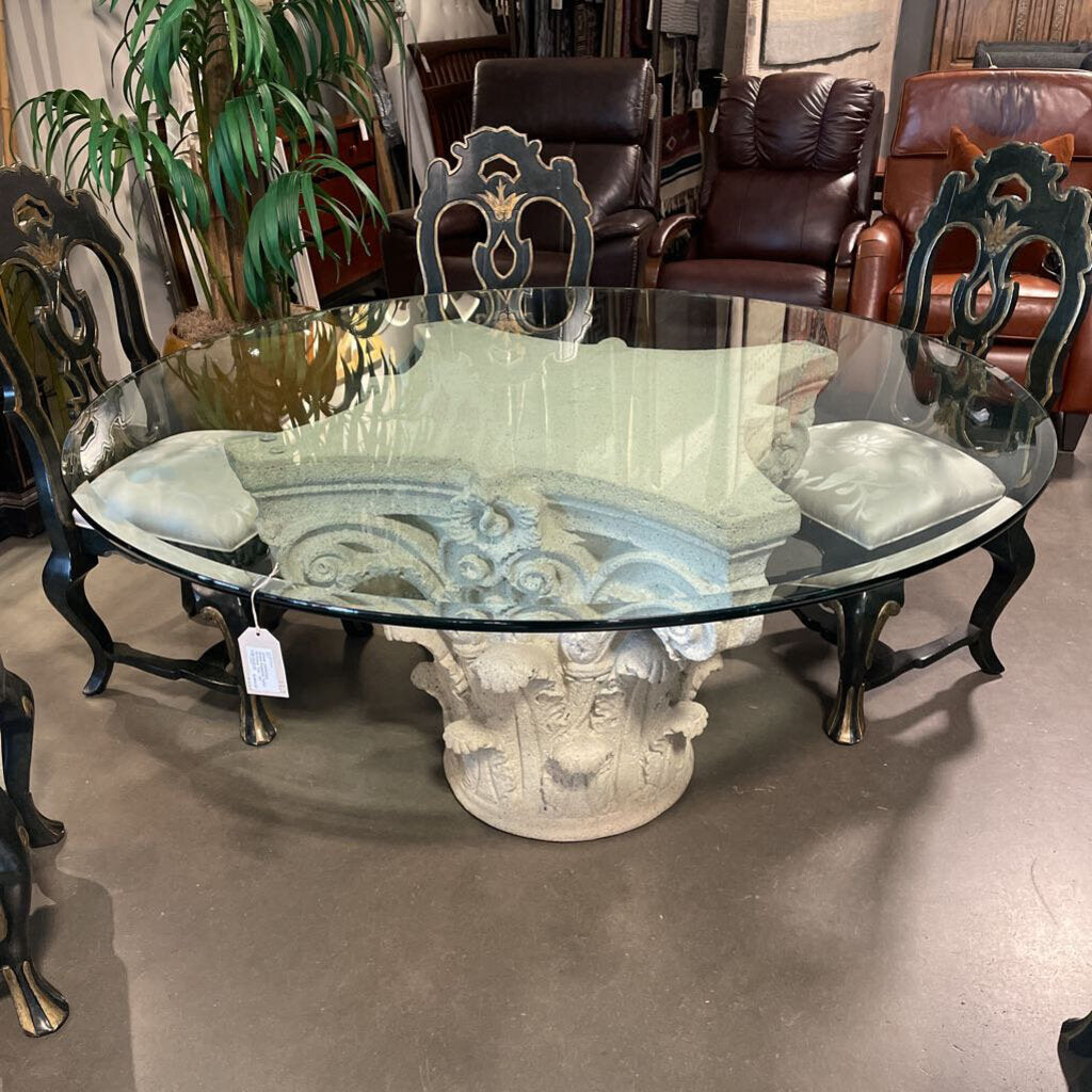 Greek Corinthian Stone Pedestal Table W/Glass Top - 60"