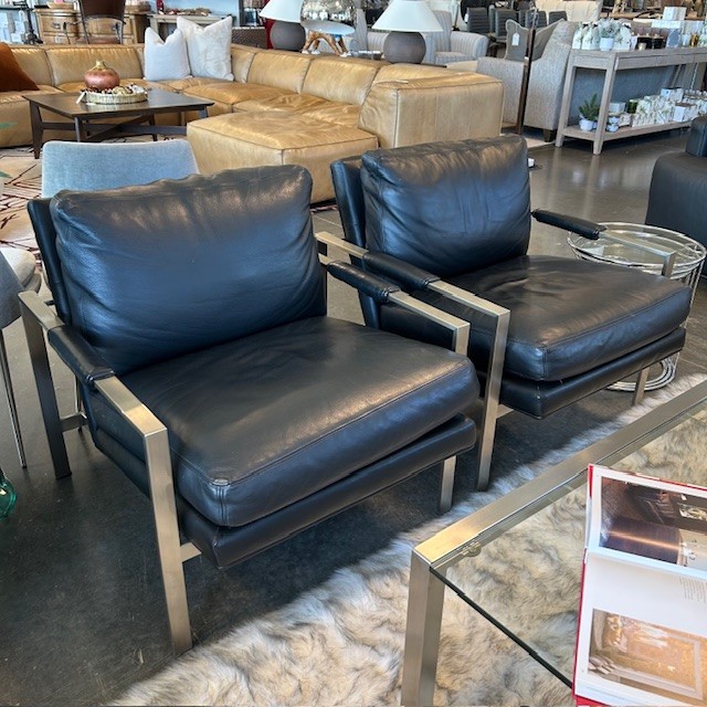 Milo Baughman-Crate & Barrel Black Leather Arm Chairs- Pair