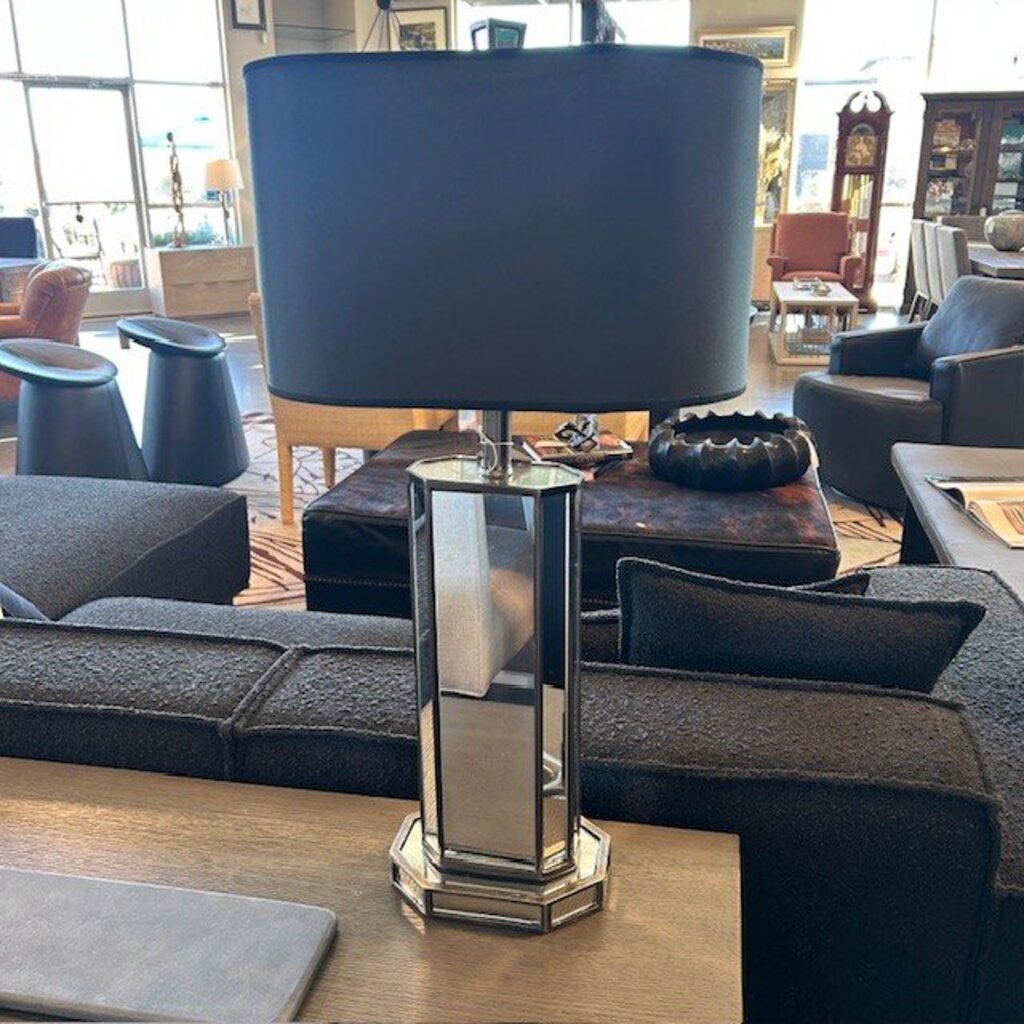 Mirrored Table Lamp W/ Black Shade - 30"