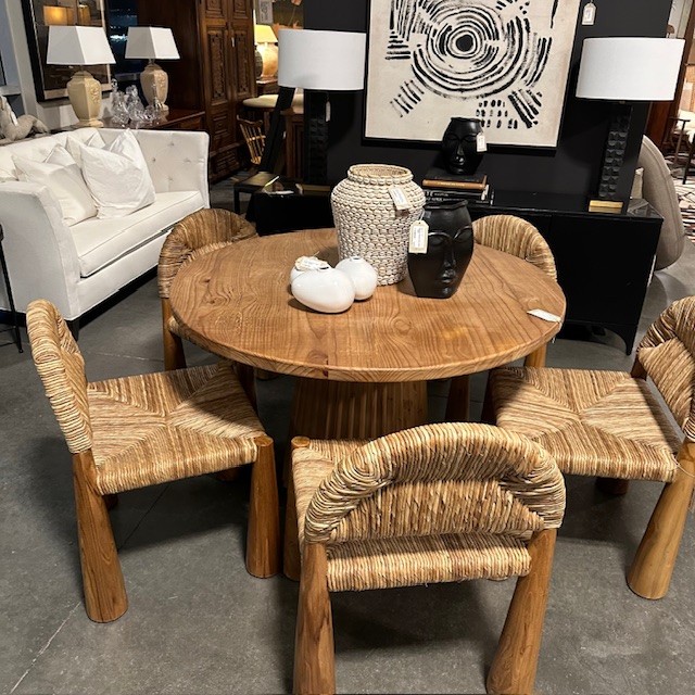 Round Copper Dining Table on Iron Stand - 53" - As is
