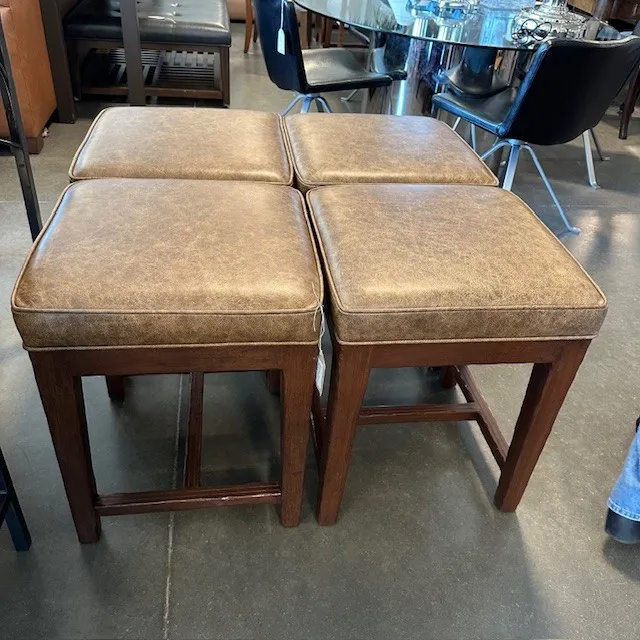 Old Hickory Tan Leather Counter Stools - Set of 4