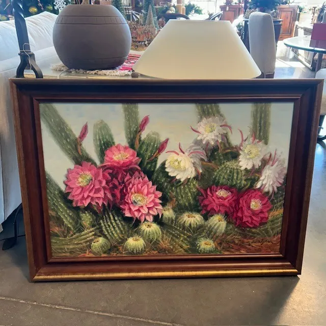 Original Cactus Art In Gold Wood Frame By Doris Frignac