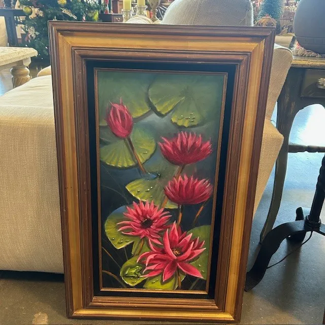 Original Lily Pad Art In Gold Frame Signed By Doris Frignac