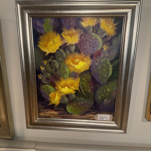 Original Prickly Pear Cactus Art In Silver Frame By Doris Frignac- 21X25