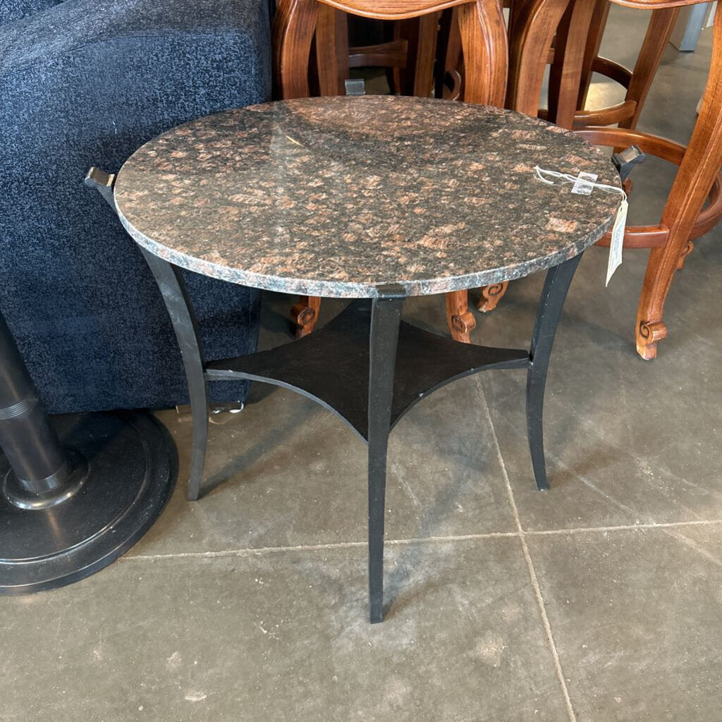 Oval Iron Side Table W/ Granite Top- 23.5X18X22H