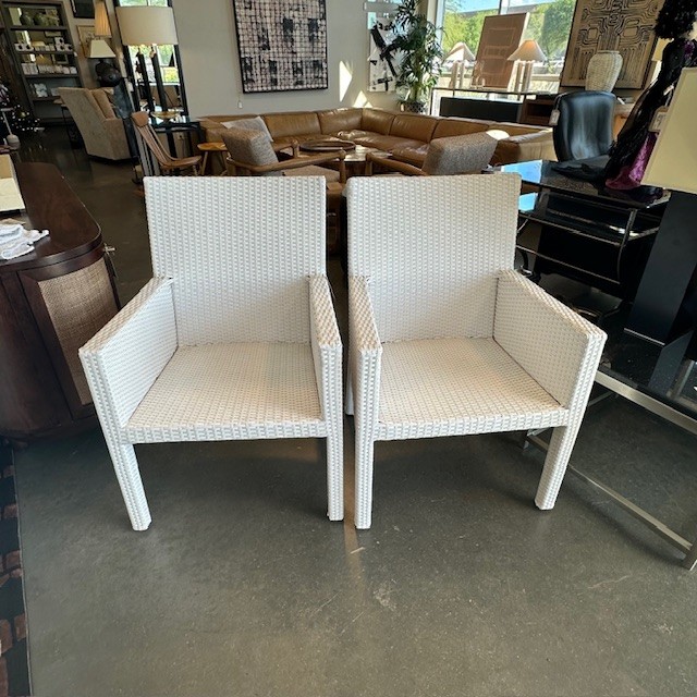Palermo White Wicker Resin Dining Arm Chairs - Pair