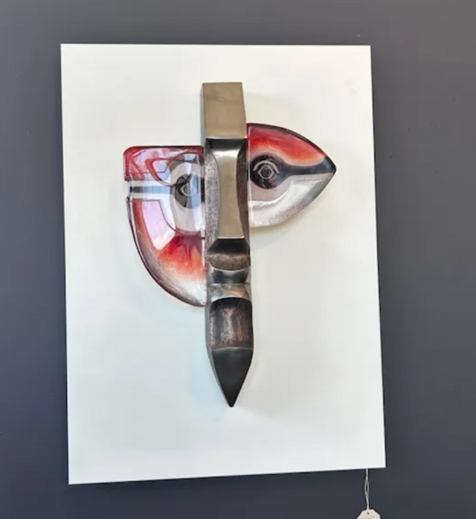 Red Atle 2 Crystal Wall Sculpture Mask by Mats Jonasson Crystal