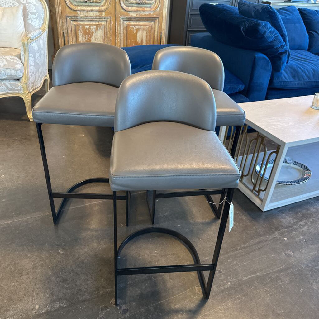 Restoration Hardware 1960s Rome Leather Counter Stool - Set of 3