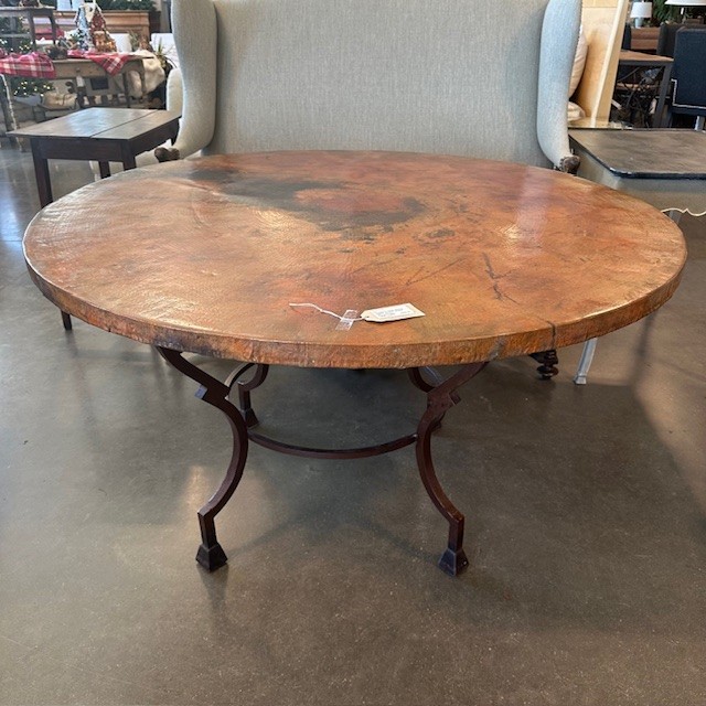 Round Copper Dining Table on Iron Stand - 53" - As is