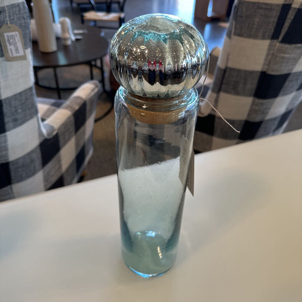 Round Glass Canister W/ Mercury Ball Top- 4X4X16