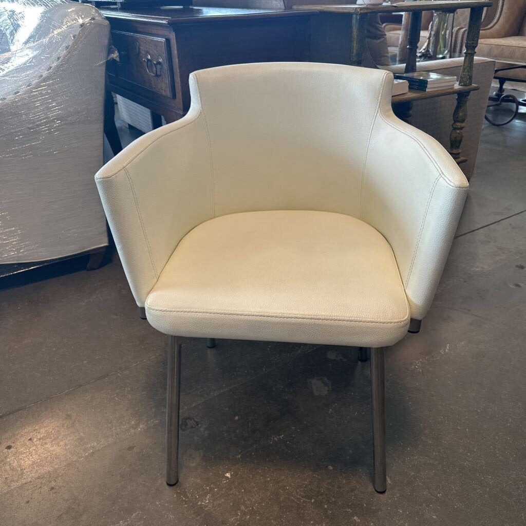 Sunpan White Leather Swivel Dining Chairs- Set of 6