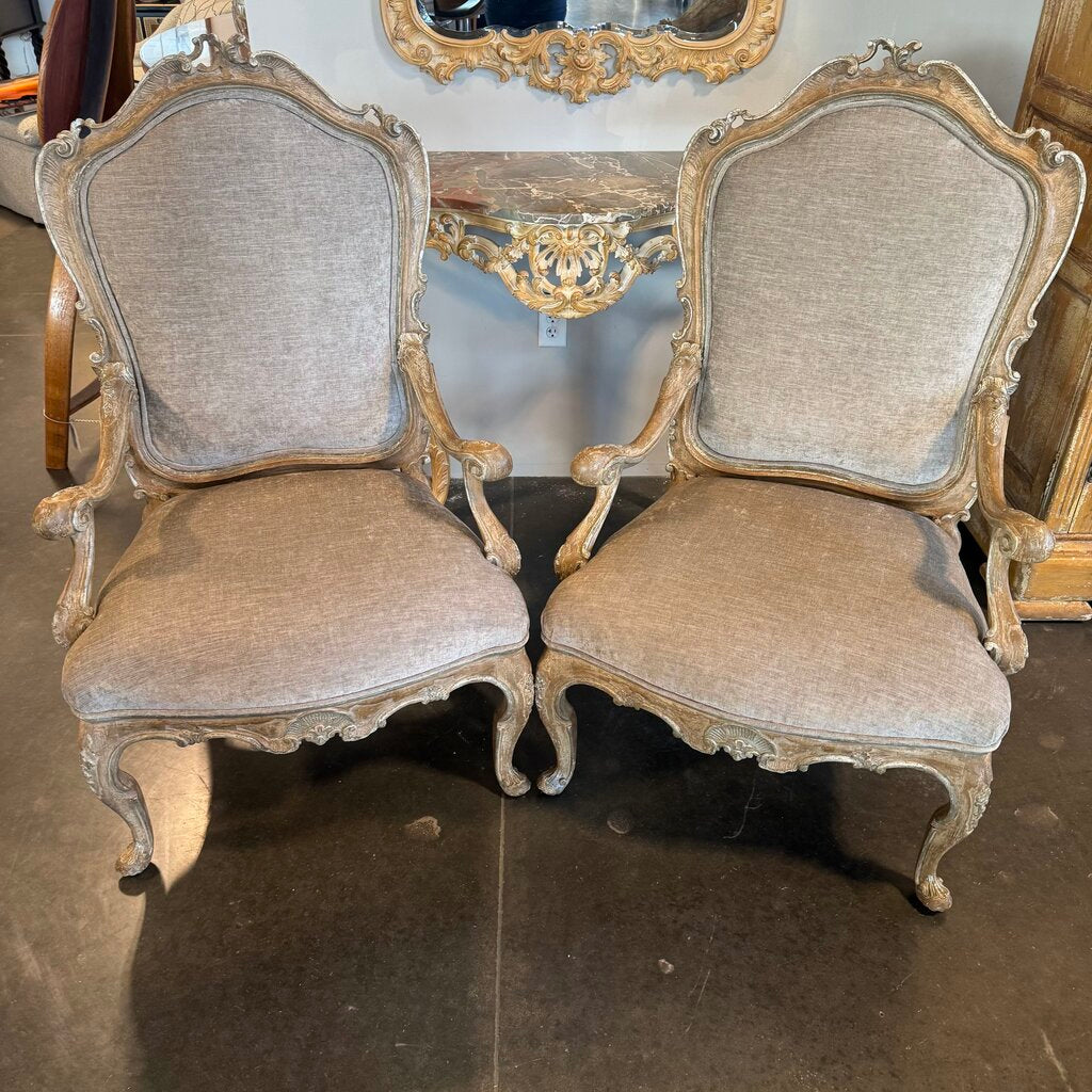 Vintage Carved Wood Arm Chairs W/ Velvet Upholstery- Pair