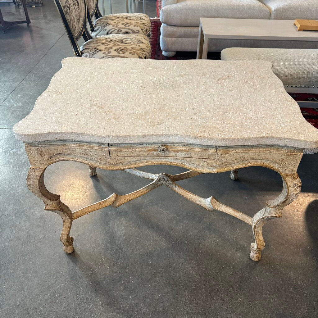 Vintage Carved Wood Console W/ Stone Top- 37X25.5X27