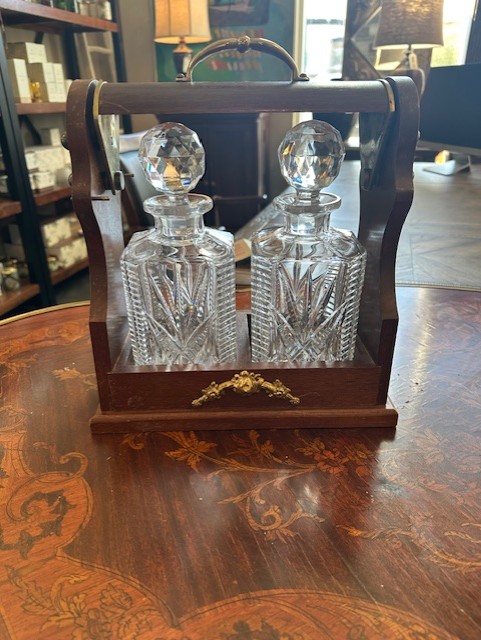 Vintage English Tantalus W/ Set of 2 Liquor Decanters