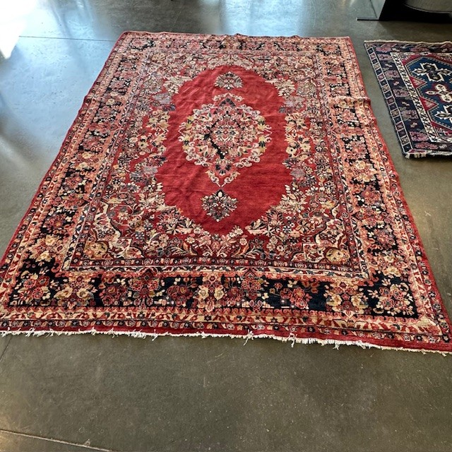 Vintage Turkish Blue & Red Rug W/ Center Crosses